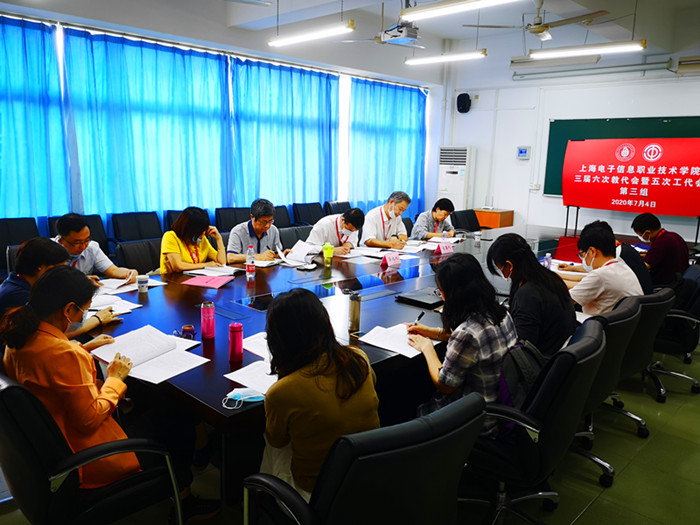 大会听取了党委副书记、副校长、工会主席张涛作的《工会工作报告》。报告全面回顾2019年工会工作,并介绍了2020年工会工作要点。书面印发了《工会关于实施教职工晋升技师、高级技师奖励计划的方案(修订)》《上海电子信息职业技术学院(上海电子工业学校)教职工帮困互助基金章程(修订)》两个文件和《2019年工会财务收支情况报告》《2019年帮困助学基金使用情况报告》等报告。第一次全体代表大会之后,代表们分组审议讨论学校行政工作报告、工会工作报告及其他大会文件。代表们认为,杨校长作的行政工作计划紧密结合学校实际,思路清晰、重点突出,理论联系实际,对2020年学校工作作出整体规划。分组审议讨论后,党委书记田钦主持召开了主席团扩大会议,听取了各代表组讨论情况汇报。