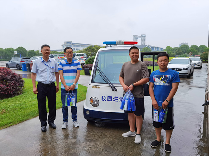 夏日送清凉,关怀暖人心,暑假的第一天,学校还有很多教职工在一线坚持工作。7月6日上午,学校党委副书记、副校长、工会主席张涛带领工会干部慰问了高温户外工作的安保、后勤、基建和学生管理一线的教职工,为他们送去了学校的关心、组织的温暖和夏日的清凉。