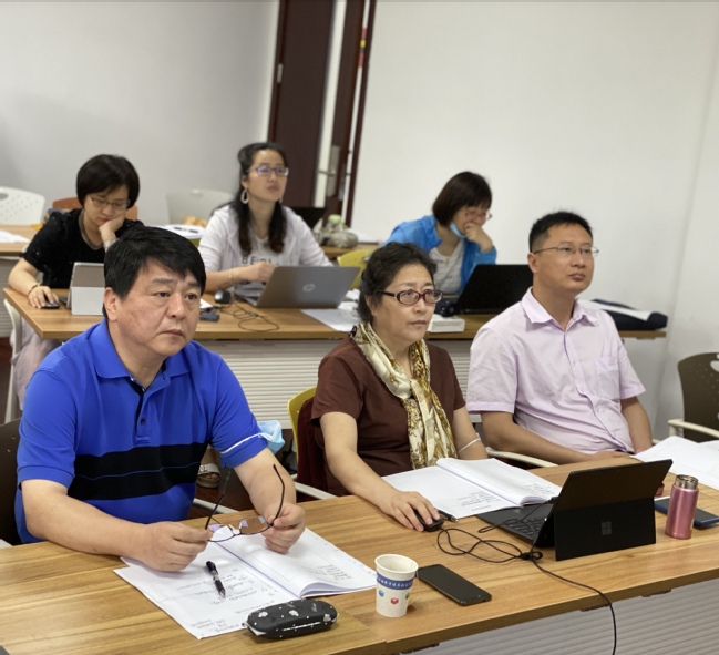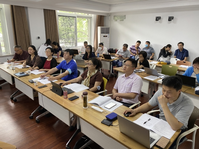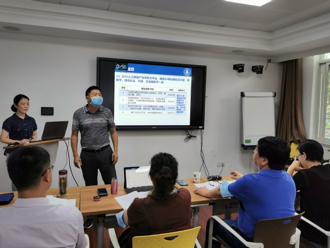 中期检查集中在7月6日和7日两天进行。项目负责部门进行建设情况汇报,与会人员就党建引领、经费使用、设备购置、资源建设、师队建设、制度流程建立等各领域进行了深入探讨。