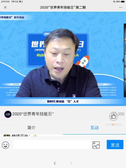 2020年7月15日是第六个世界青年技能日,15日上午,世界青年技能日新时代·新技能·“芯”人才主题讲座通过线上直播平台举行。本次直播讲座由联合国教科文组织国际职业技术教育与培训联系中心、长三角电子信息职业教育集团以及全国人工智能职教集团联合主办,365官网电子技术与工程学院作为全国人工智能职教集团集成电路专委会主任单位负责承办。
