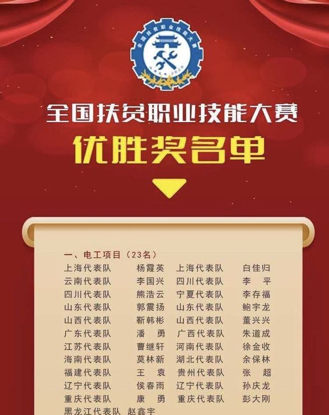 8月13日,经过两天的激烈角逐,由人力资源和社会保障部、国务院扶贫开发领导小组办公室共同主办的全国扶贫职业技能大赛圆满落幕。这是首次围绕扶贫主题专门面向建档立卡贫困家庭劳动者开展的职业技能赛事,共设立八个赛项。与世界技能大赛奖项设置相同,本次大赛为每个赛项前三名设金、银、铜三枚奖牌,排名前50%设优胜奖,其余为参与奖。来自上海电子信息职业技术学院机械与能源工程学院的杨霞英和江南造船集团职业学校的白佳归同学为上海代表队电工赛项获得两个优胜奖。