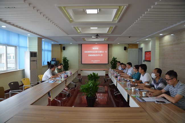 9月15日,上海市教卫工作党委副巡视员杨伟人、市教委国际交流处李佳璐一行来365官网检查、指导疫情防控和开学准备工作。学校党委书记田钦、党委副书记、校长杨秀英、副校长徐德明和相关职能部门负责人参加了会议。
