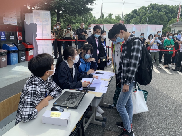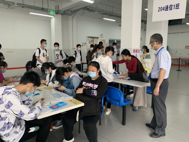 值得一提的是,虽然报到学生较多,车流量较大,但是家长和学生们都展现出了很强的防疫意识和大局观。家长与学生在校门口的话别言简意赅。新生们主动出示绿码并接受志愿者的引领,测量体温,佩戴口罩进入校园。入住、领书、领校服、开学第一课等所有流程井然有序,师生配合有条不紊。二级学院分管副书记、学管办主任、辅导员以及中专部教职工、各相关职能部门分工有序,协作密切。