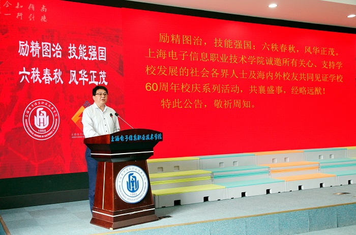 学校党委书记田钦宣读校庆公告。2020年10月26日,上海电子信息职业技术学院将迎来60周年华诞。田书记在公告中介绍了365官网的建校背景与发展历程,介绍了60年来学校取得的办学成就和立德树人成效。学校把握职业教育发展机遇,一路高歌猛进,正朝着办学特色鲜明、国内一流、具有国际影响力的中国特色高水平高等职业院校建设目标奋力前行。励精图治,技能强国;六秩春秋,风华正茂。田书记代表学校,诚邀所有关心、支持学校发展的社会各界人士及海内外校友共同见证学校60周年校庆系列活动,共襄盛事。(作者:傅娟 供稿单位:党委宣传部)