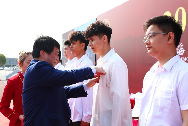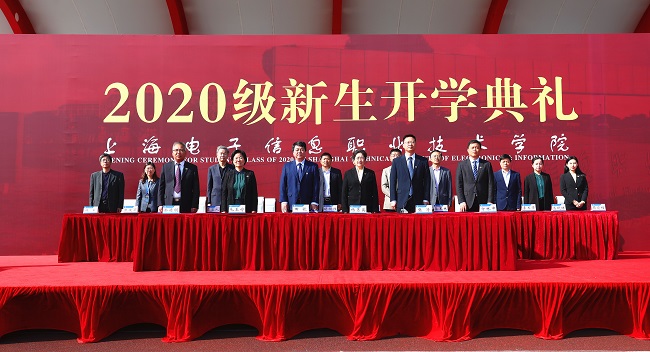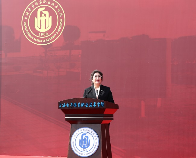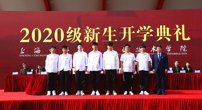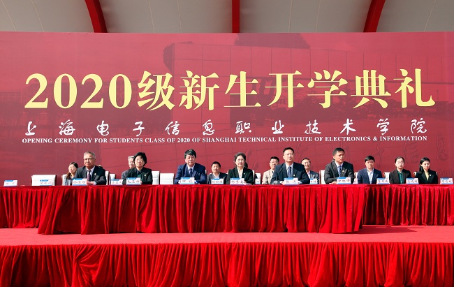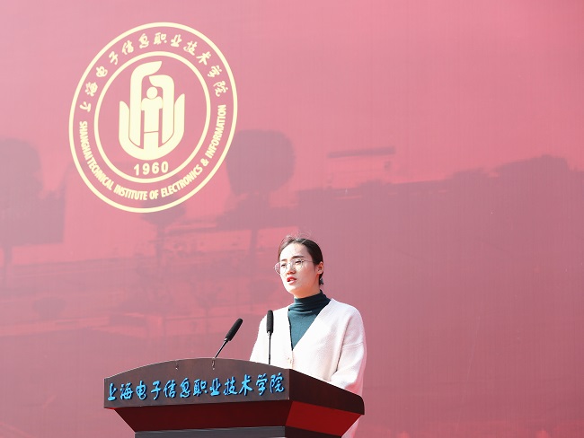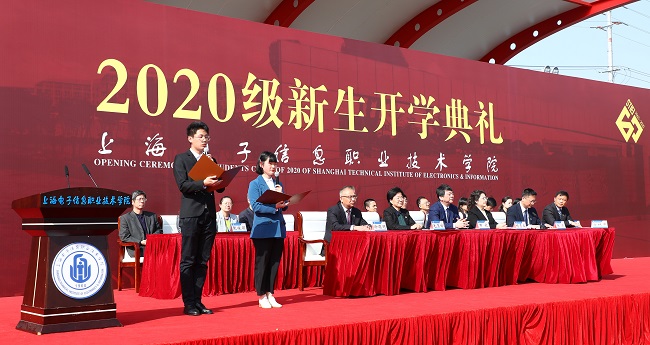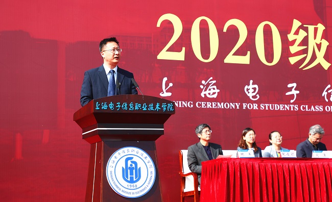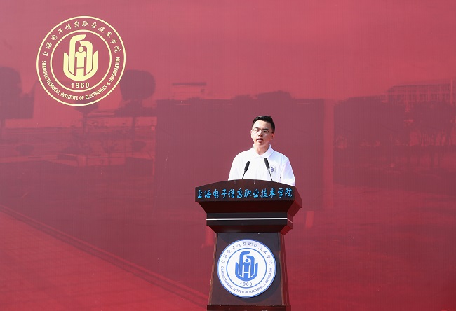 典礼上,学校党委书记田钦为新生代表佩戴了校徽,为同学们扣好“大学生活第一粒扣子”,象征着新生们正式开启了在上海电子信息职业技术学院的求学生涯。