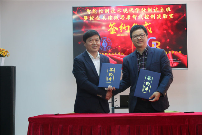下午,电子技术与工程学院举行项目合作签约仪式。电子技术与工程学院与范植华教授签署了“智能控制技术大师工作室”合作项目。随后,我院又分别与百科、朗讯、甘润、宏晶、加速五家企业签署了“嵌入式人工智能研究所”、“智能控制技术现代学徒制试点班暨校企共建微思康智能控制实验室”、“集成电路专业师资培训及考点建设”、“加速集成电路行业创新基地”、“集成电路研究所”等合作协议。