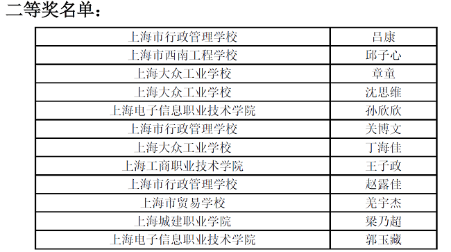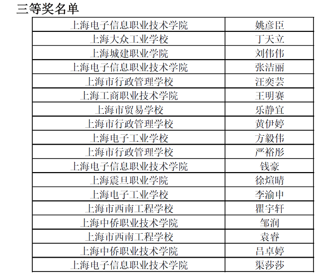 经过一天的角逐,共产生个人一等奖6名、二等奖12名、三等奖18名,以及团体特等奖、一、二、三等奖。上海电子信息职业技术学院获得团体特等奖、3项个人一等奖、2项个人二等奖、4项个人三等奖。
