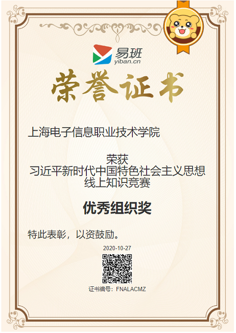喜报传来!近期,在易班网刚刚结束的“新时代 新思想”——习近平新时代中国特色社会主义思想线上主题活动中,365官网荣获习近平新时代中国特色社会主义思想线上知识竞赛优秀组织奖,通信与信息工程学院王翰林同学荣获习近平新时代中国特色社会主义思想线上知识竞赛专科组三等奖。 此次活动提升了大学生对习近平新时代中国特色社会主义思想的认识,引导大学生坚定中国特色社会主义理想信念,努力成为新时代中国特色社会主义的合格建设者和可靠接班人。(供稿单位:学工部)
