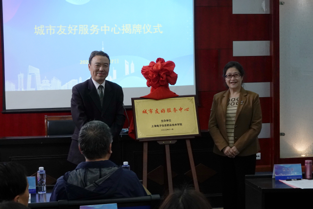 随后,姜海山、杨秀英为城市友好服务中心揭牌。上海电子信息职业技术学院副校长方林中为中心各成员单位授牌。