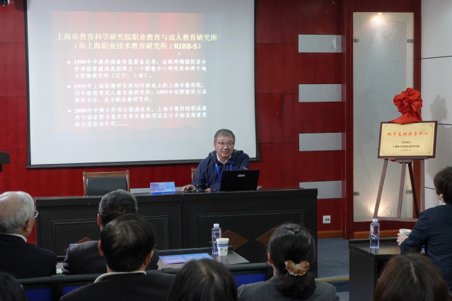 合作院校上海工商外国语职业学院欧语学院院长虞龙发致辞,回顾中心成立历程,感谢各方精诚合作,希冀中心各成员方秉承初心、再接再厉,创出品牌。