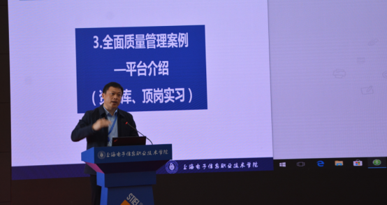 会议还以资源库和顶岗实习两个应用系统为例,强调了信息化建设在全面质量管理过程中发挥的智能作用。副校长方林中指出,顶岗实习平台的建设大大减少了教师的工作量,通过平台数据来分析学生实习情况,让教师能快速、全面地掌握学生情况,更有利于教师指导学生。