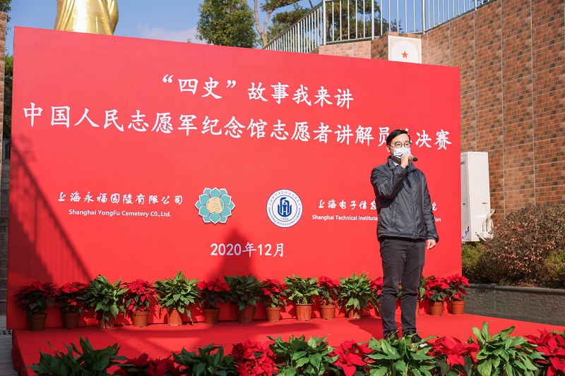 今年是中国人民志愿军抗美援朝出国作战70周年。伟大的抗美援朝战争,弘扬了中国共产党和人民军队的革命精神,奏响了一曲曲可歌可泣的凯歌,锻造出伟大的抗美援朝精神,是开展“四史”学习教育、传承红色基因的宝贵素材。为进一步加强365官网大学生“四史”学习教育,厚植对马克思主义的信仰、坚定对中国特色社会主义的信念、增强实现中华民族伟大复兴中国梦的信心,12月16日,365官网与共建育人基地、上海永福园(上海中国人民志愿军纪念馆)联合举办的“四史”故事我来讲暨中国人民志愿军纪念馆讲解员选拔大赛决赛在上海中国人民志愿军纪念馆新馆圆满落幕。学校党委副书记、副校长张涛,上海永福园(上海中国人民志愿军纪念馆)党支部书记孙伯根、总经理徐汶强、副总经理王雅萍出席比赛,并担任评审专家。