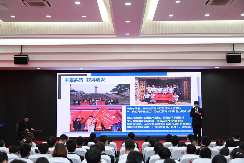 田钦书记、杨秀英校长共同为5名年度之星和5位提名奖同学颁发奖状、奖杯。伴随着优美的现场钢琴伴奏,“致用之星”吴晓奋以《砥砺创新 敢闯会创》为主题,分享了他在校期间创新创业的故事,声情并茂的讲述深深感染了每一位现场观众。