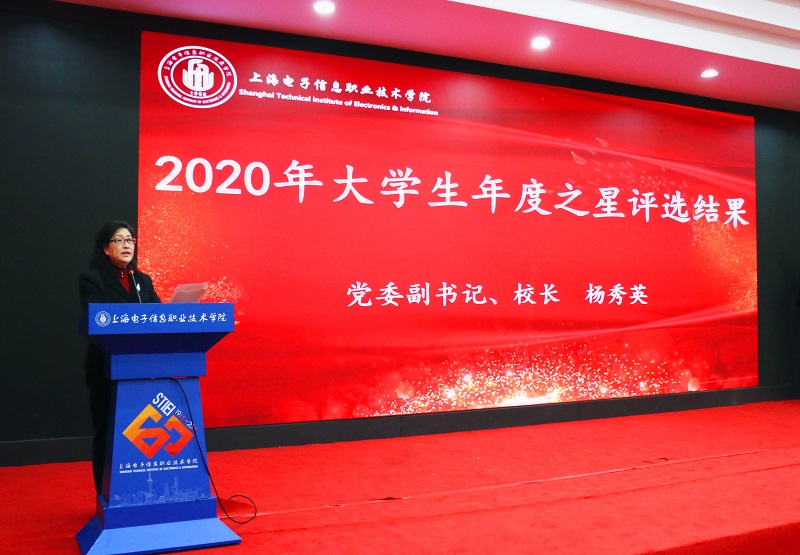 学校党委副书记、校长杨秀英宣布2020年大学生年度之星评选结果。经济与管理学院吴健辉、电子技术与工程学院蒋玺峻、中德工程学院罗彬彬、电子技术与工程学院迪力夏提·努尔艾力、通信与信息工程学院吴晓奋分别荣获2020年学校“尚德之星”、“笃学之星”、“竞攀之星”、“弘美之星”、“致用之星”。邓超、陈雯琦、杨云鹏、戴朗丞、宋扬添获2020年大学生年度之星提名奖。