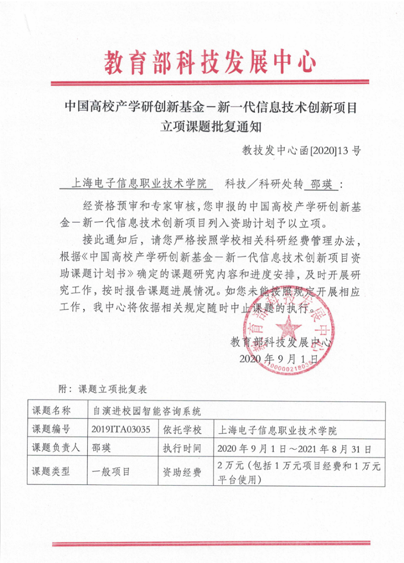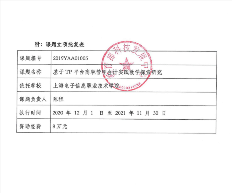 近日,教育部科技发展中心印发《中国高校产学研创新基金——燕园项目立项公告》,365官网经济与管理学院陈程老师申报的《基于TP平台高职管理会计实践教学探索研究》获批立项,立项金额8万元。此前,365官网电子技术与工程学院邵瑛老师曾于2020年9月首获《中国高校产学研创新基金——新一代信息技术创新项目》立项,立项金额2万元。
