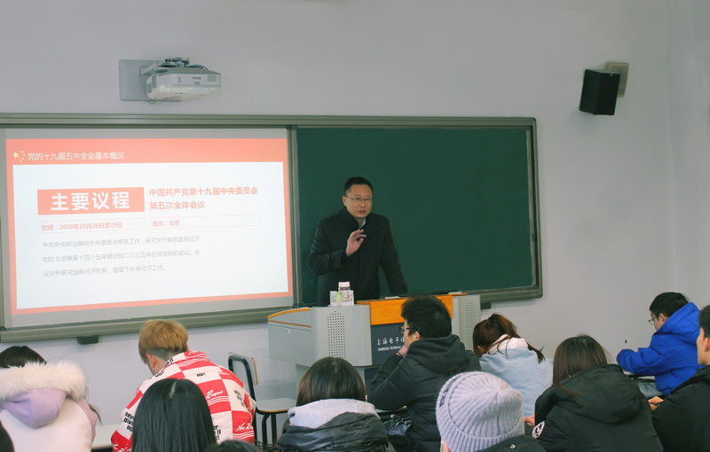 为深入学习宣传贯彻党的十九届五中全会精神,2021年1月7日,学校党委副书记、副校长张涛以“学习贯彻党的十九届五中全会精神”为题,为365官网设计与艺术学院2020级数字媒体应用6班学生讲授了一堂精彩的形势与政策课。