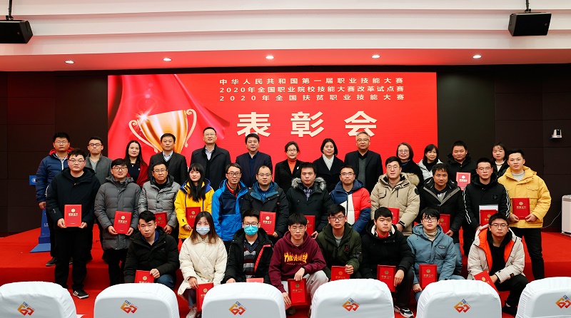 表彰会首先回顾了2020年全校师生参与国家级职业技能大赛的全过程。在接下来的颁发证书环节,校领导分别为2020年各项国家级职业技能大赛的工作保障人员、指导教师、参赛选手、获奖选手颁发了荣誉证书。