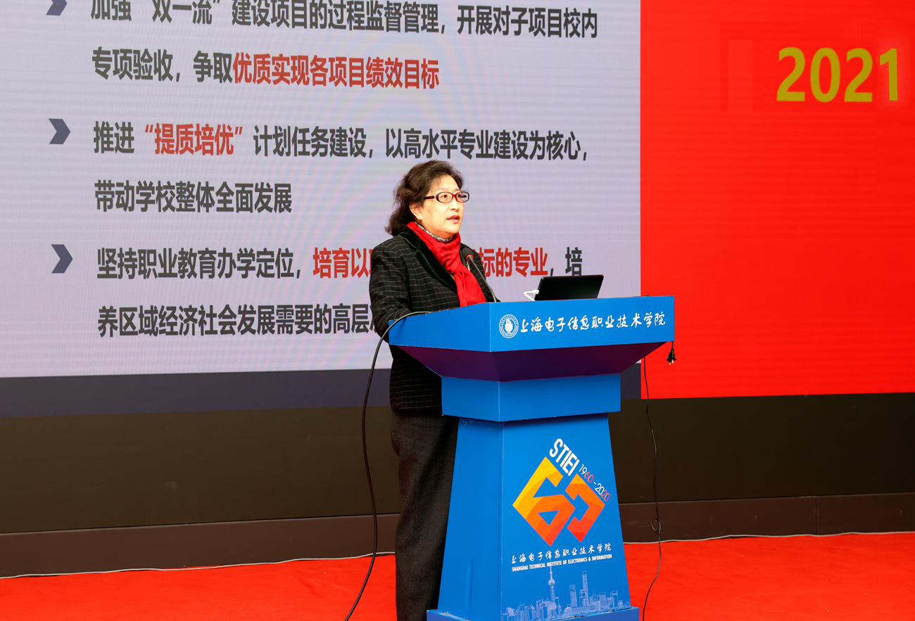 党委副书记、校长杨秀英就学校行政工作作部署和要求。她提出,一是坚持党的全面领导,为“十四五”谋篇布局。要提高政治站位,切实履行工作职责,依靠党建引领学校高质量发展;遵循国家、上海市相关发展规划、定位,顺应高职发展形势,聚焦发展特色,完善学校“十四五”规划及各专项分规划。二是持续推进依法治校,深化教育教学改革。要提升依法治校水平,持续完善内部治理体系和机制;要强化内部控制管理,全面强化过程管理,严格规章制度执行;要进一步建设一流高职院校;要推进“提质培优”计划任务建设,以高水平专业建设为核心,带动学校整体全面发展;要培育以职业本科为目标的专业,培养区域经济社会发展需要的高层次技术技能人才;要进一步加强质量工程建设。三是强化立德树人根本,提升教师队伍质量。要坚持立德树人根本任务,引导学生全面成长成才;要加强教师队伍建设,为“双一流”院校建设提供人力资源保障。四是规范国际交流管理,提升国际竞争能力。要提高交流合作水平,探索疫情常态化下中外合作新举措。五是提高科研技术水平,提升社会服务能力。要加强科研管理服务;要做好社会服务工作。六是建设美丽和谐校园,提高管理服务效能。要继续做好疫情防控常态化工作,慎终如始抓严抓实;要加快数字校园建设,打造智慧校园;要提升图书和档案管理水平,提升服务品质;要加强招生就业工作;要建设和谐健康平安校园;要加强校园文化建设,提高文明校园建设水平;要努力推进学校四期工程年内计划实施,为师生创建环境友好校园。