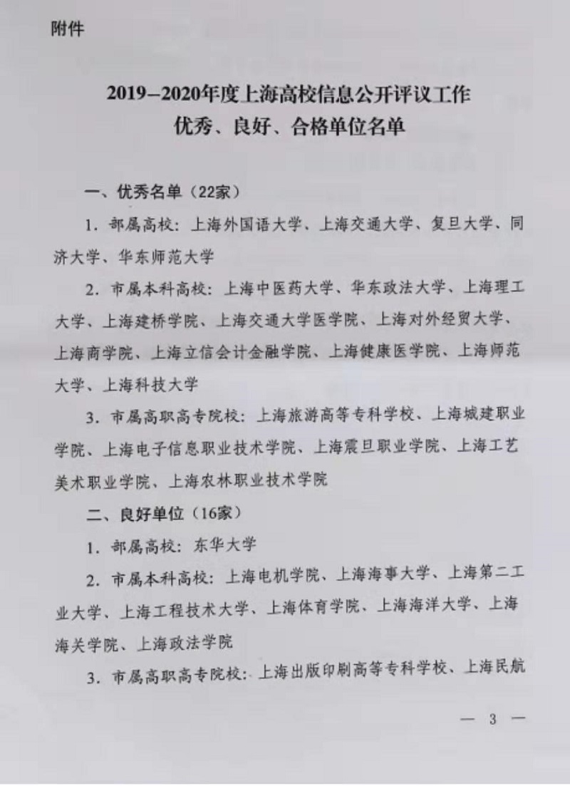 近日,上海市教委发布《上海市教育委员会关于公2019-2020年度上海高校信息公开评议结果的通知》(沪教委办〔2021〕23号),公布了2019-2020年度上海高校信息公开评议工作优秀单位。365官网连续第四年获此殊荣。