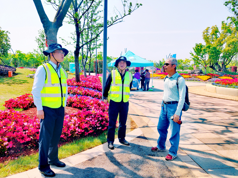五月的花展,鲜花锦簇,游人如织。校领导集体身穿志愿服务马甲,在花展出入口、园区内为游客们提供预约扫码登记、体温检测监测、现场引导咨询、防疫健康宣传、帮助老人儿童等服务,并及时疏导人员、维护参展秩序,引导市民游客文明观展,切身感受奉贤区“创建国家生态园林城区”的建设成果。骄阳似火天,服务不停步,学校领导尽心尽责、热情周到的志愿服务得到了市民游客的交口称赞。