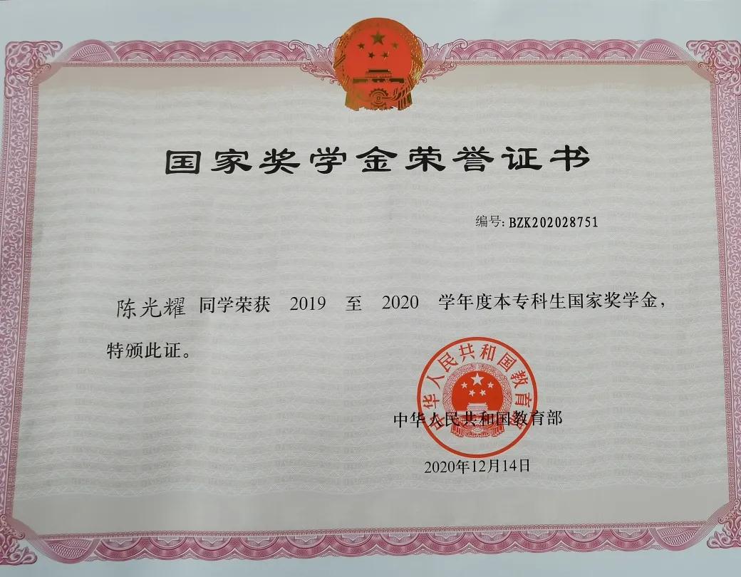 5月4日,《人民日报》专版刊登《本专科生国家奖学金获奖学生代表名录》,全面展示本专科生国家奖学金获奖学生中的100名优秀代表的风采。365官网通信与信息工程学院软件技术专业2018级学生陈光耀榜上有名,且是上海唯一一个上榜的专科生,也是全国13个高职高专院校学生之一。