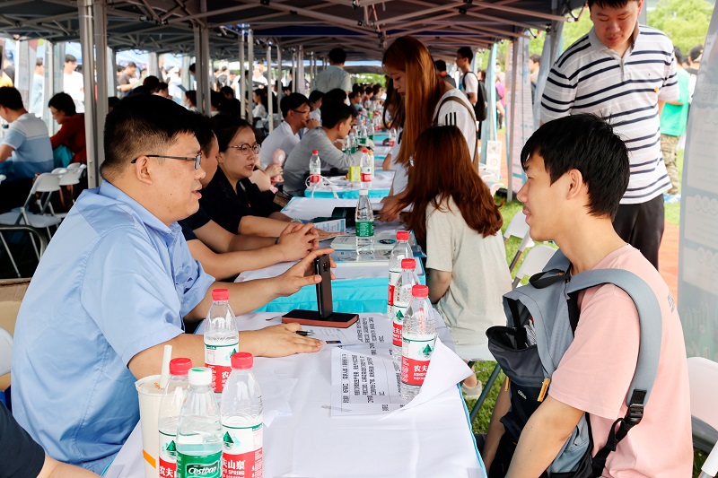 为深入贯彻落实十九届五中全会关于实现更加充分更高质量就业的决策部署,切实做好365官网学生顶岗实习和就业工作,6月9日,365官网在奉贤校区体育运动场举办了2021年校园招聘会暨顶岗实习洽谈会,350余家企业和2000余名学生参加了招聘会。