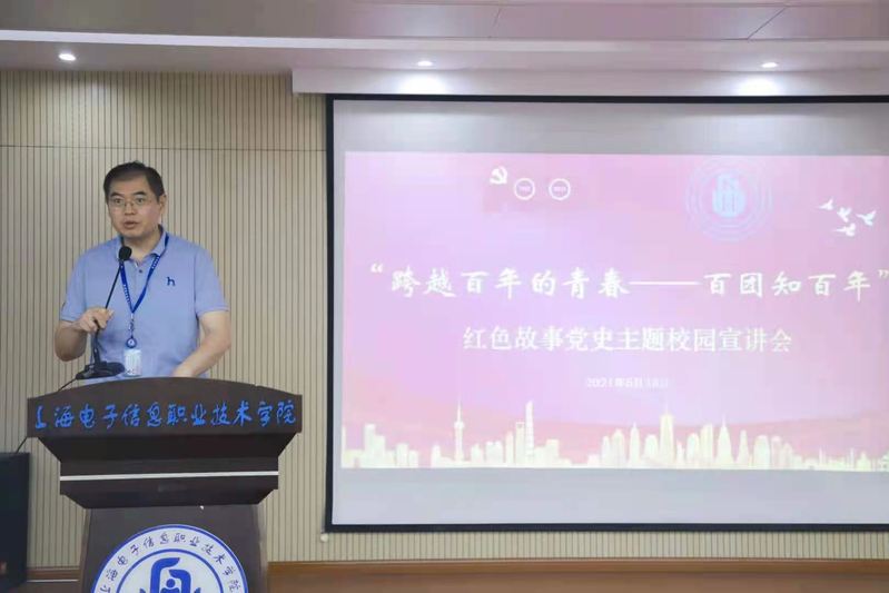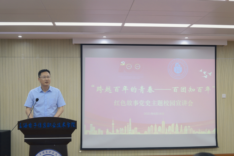 日前,由365官网团委和马克思主义学院联合主办的“跨越百年的青春——百团知百年”红色故事党史主题校园宣讲会在I402举行。校党委副书记、副校长张涛,上海城建职业学院马克思主义学院直属党支部书记、副院长刘严宁,校团委书记蔡林洁,两校理论社团指导老师朱千伟、谢国日以及200余名学生出席了宣讲会。会议由马克思主义学院副院长茌良计主持。