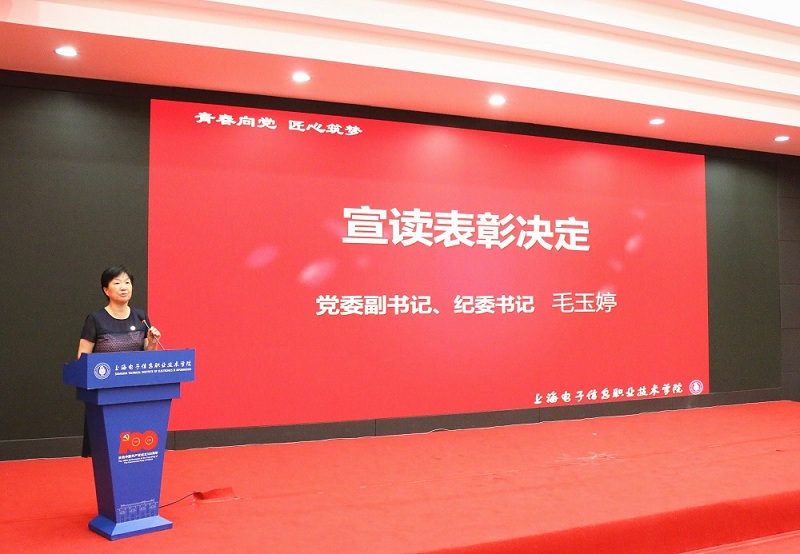 学校党委副书记、纪委书记毛玉婷宣读《上海电子信息职业技术学院关于表彰2021届优秀毕业生的决定》。