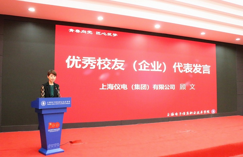 上海仪电(集团)有限公司、1987级电子设备结构设计专业顾文作为优秀校友代表为即将走向工作岗位的学弟学妹们送上祝福,她提出三点建议与大家共勉:一是要坚守家国情怀;二是要赓续奋斗精神;三是要永葆终身学习。