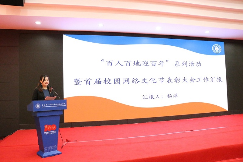 会上,学校易班发展中心主任杨洋从活动背景、活动展示、活动成效、工作展望等四个方面,全面回顾学校“百人百地迎百年”系列活动暨首届校园网络文化节的工作举措和成效。她指出,“百人百地迎百年”系列活动自今年三月启动以来至今,在各二级学院的大力支持下,开展了丰富多彩、形式多样的活动30余场次,累计辐射校内师生12000余人次,学校多项活动被校外媒体关注并报道,获得一致好评,在全校学生中营造出浓厚的党史学习教育氛围。
