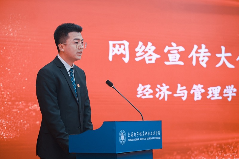 “2020年上海市优秀易班工作站站长”、经济与管理学院周新人作为学生代表发言。他感慨道,自2020年4月起担任学校易班发展中心第九任站长,转眼四百余天过去,已完成使命、离任交接。在校两年经历了很多具有历史意义的事件,也在老师的指导和帮助下扣好人生的第一粒扣子,把心中的信仰、胸中的知识、肩上的担当、脚下的力量统一起来,在学习中感悟党的思想伟力,在实践中守护党的初心使命。他呼吁同学们,担负起青春责任,强化网端生活素养,为营造清朗的网络空间贡献青年力量。