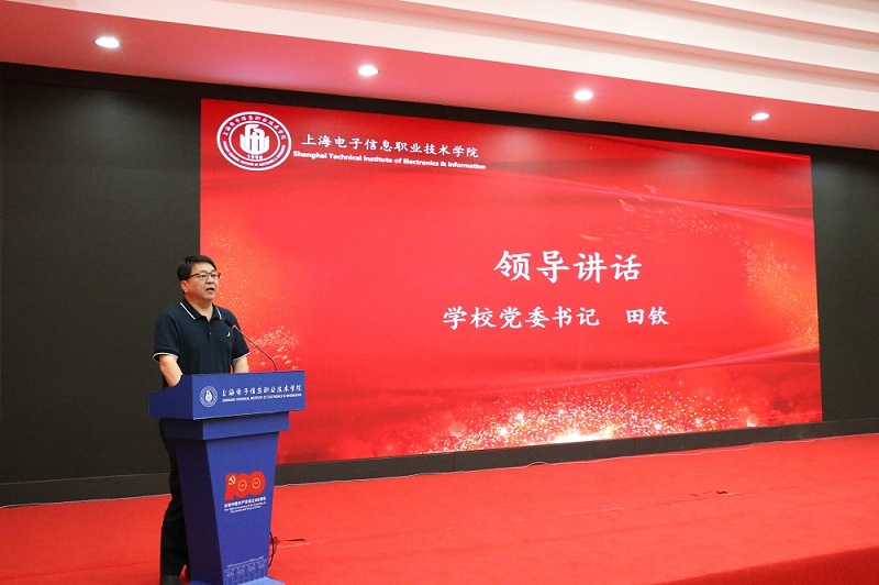 学校党委书记田钦发表慷慨激昂的讲话。他讲到,今年是中国共产党成立100周年。在百年奋斗历程中,中国共产党团结带领人民创造辉煌、开辟未来,党自身也从小到大、由弱到强,愈益青春勃发。党的故事是广大青年最好的老师。为讲好党的故事、传承精神力量,学校党委以高度的思想自觉和行动自觉,把开展党史学习教育作为今年一项极端重要的政治任务。在学校党委的领导下,学工部在全校范围内开展“百人百地迎百年”庆祝建党100周年系列活动暨学校首届大学生网络文化节,带领同学们通过学习和创作,来回顾党百年光辉的奋斗历程、讴歌党的辉煌成就、表达对党的美好祝愿。在师生的共同努力下,各项活动都搞得有声有色、有滋有味,创作出一批优秀的文艺作品,让党史学习教育有声势、接地气、见实效,唱响网络主旋律,传递网络正能量,在青年学生中营造出积极的党史学习教育氛围。同时,他就下一阶段继续开展党史学习教育工作提出三点要求:一是要提高政治站位,坚持正确方向。要深入学习宣传贯彻习近平新时代中国特色社会主义思想,增强“四个意识”、坚定“四个自信”、做到“两个维护”,在学校党委的领导下,确保宣传活动始终坚持正确的政治方向、舆论导向、价值取向。二是要坚定理想信念,厚植爱国情怀,以实际行动践行爱党、爱国的担当使命。将爱国情怀内化于心、外化于行,将爱国情怀与个人成长、时代进步互相砥砺,把个人的奋斗叠加成国家的进步,做有信仰、有情怀、有担当的新时代青年。三是要坚持主动性、自觉性、积极性地去学习中国共产党党史。党的历史是最生动、最有说服力的教科书,从百年党史中可以寻找解决今天面临的现实问题和困难的解决经验和办法,真正做到学史明理、学史增信、学史崇德、学史力行。