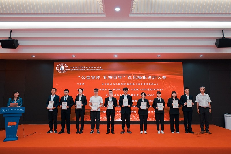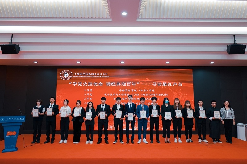 二级学院学生工作负责人陈真、姜涛、吴亚人、倪娜、高晓昧、施云美分别为“百人百地迎百年”系列活动之“传承红色基因 弘扬革命传统”微视频征集大赛、“邮记百年”定制邮票作品征集比赛、“公益宣传 礼赞百年”红色海报作品设计大赛、“学党史担使命 诵经典迎百年”寻访最红声音、“青春向党 匠心筑梦”2021届毕业生纪念品设计大赛、“讲好党史故事 传承红色基因”红色故事征集等六项活动的获奖学生颁发证书。