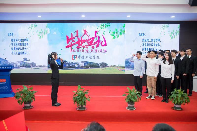 全体毕业生郑重宣誓:继承伟大建党精神,牢记母校教育培养;尚德修能,知行合一,不负众望,砥砺前行。