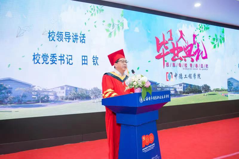 2021届学生毕业典礼在教师和毕业生代表悠扬的歌声中,隆重落幕。(供稿:中德工程学院)