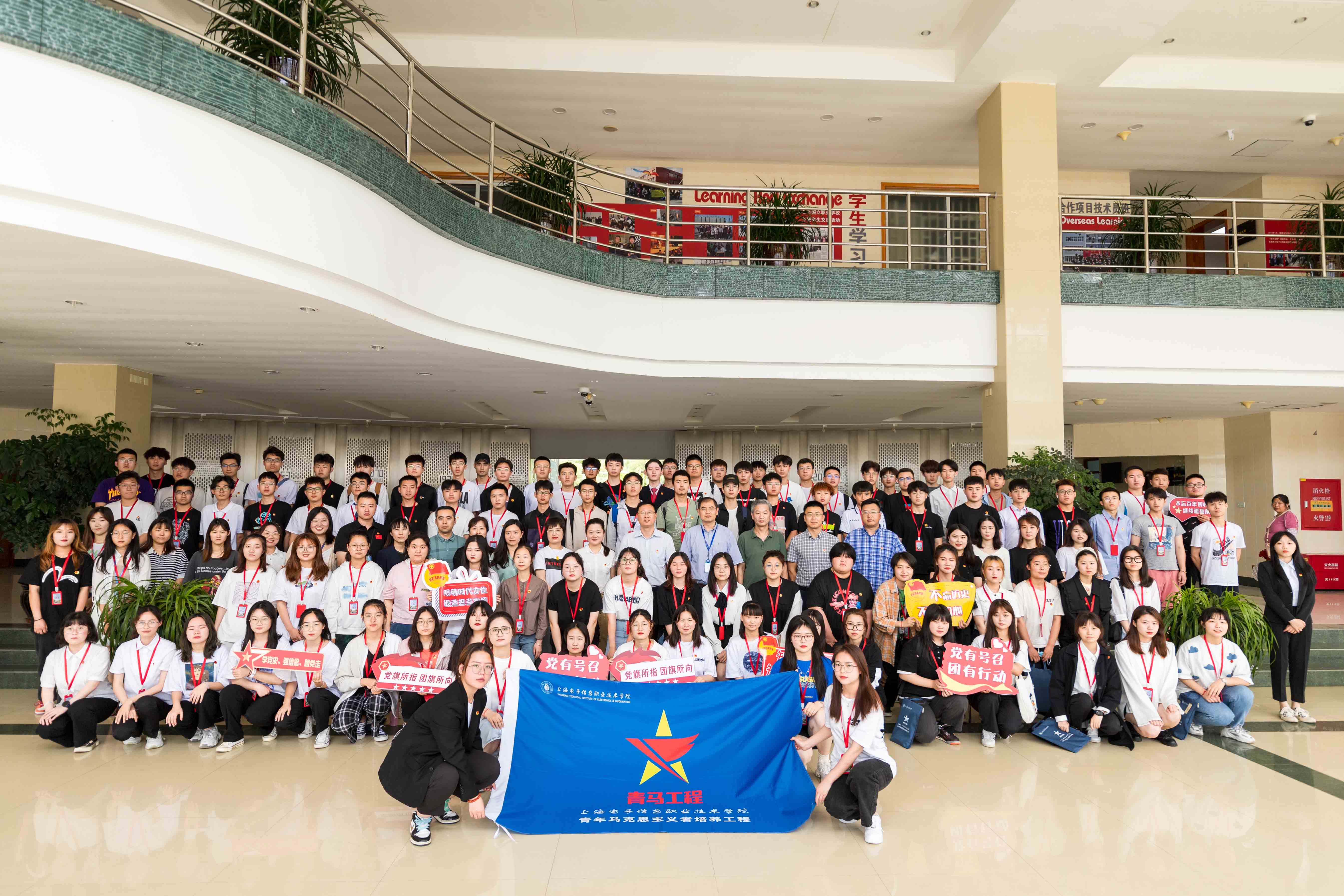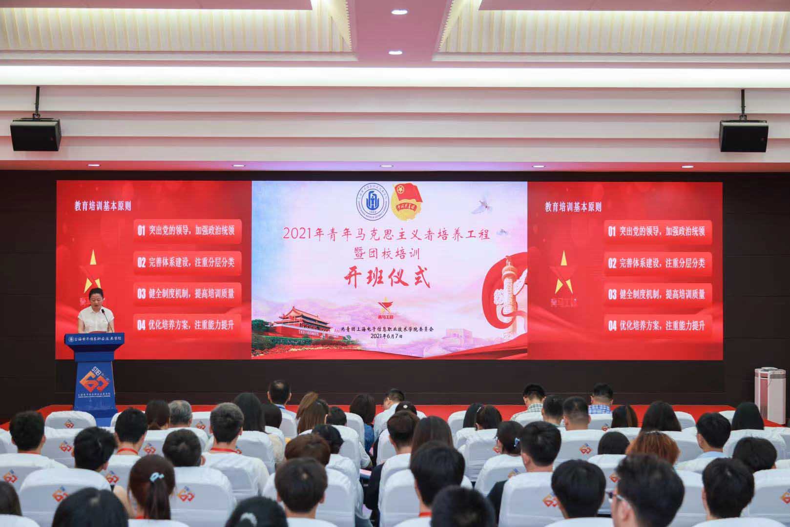 为深入学习贯彻习近平新时代中国特色社会主义思想,认真贯彻落实习近平总书记关于青年工作的重要思想,增强各级团学组织的凝聚力和战斗力,充分发挥团学骨干在团学工作中的主力军和先锋模范作用,更好地服务和引领广大青年学生,上海电子信息职业技术学院2021年青年马克思主义者培养工暨团校培训于6月7日在学校C108举行了开班仪式,100名由各二级团总支推选的优秀团学骨干、入党积极分子组成的青年马克思主义者培养工程暨团校培训第二十期青马班出席本次开班仪式。学校党委副书记、副校长张涛致辞并就办好青马工程暨团校培训提出三点建议,并用“以梦为马,不负韶华”和青马班的各位学员共勉。经过为期一个月的学习,通过理论学习、分享心得;探访红色教育基地;观看爱国电影;红色益智桌游比拼等学习方式,上海电子信息职业技术学院第二十期青马班完成了上半年的学习教育课程。
