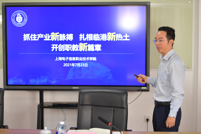 调研会上,王平主任听取了赵坚校长题为《抓住产业新脉搏,扎根临港新热土,开创职教新篇章》的汇报。汇报主要从学校基础、发展方向、建设策略和重点工作四个方面展开,着重从学校“十四五”期间工作主线创建本科层次职业技术大学的可行性、首批拟升本科专业设置,以及“四大领域”“十项策略”等建设方案和举措进行,提出了目标明晰、务实创新的工作构想和学校发展路径。交流过程中,市教委办公室主任赵宁、市教委财务处处长何鹏程、市教委发展规划处副处长张玲燕分别就聚焦特色发展、校区功能定位、财务预决算强化执行、办学经费保障、基础设施建设等方面谈了自己的意见和建议。