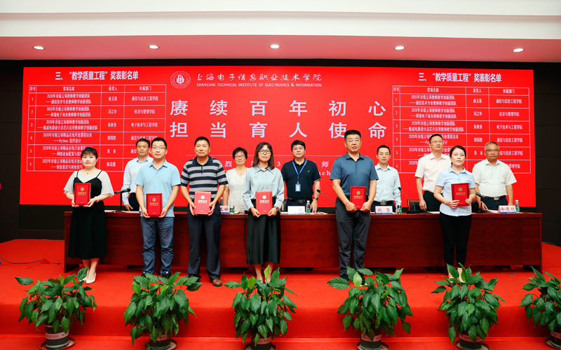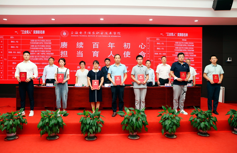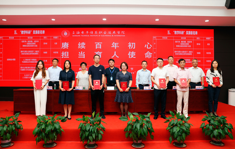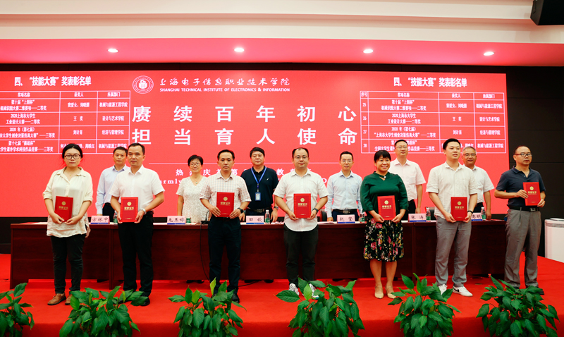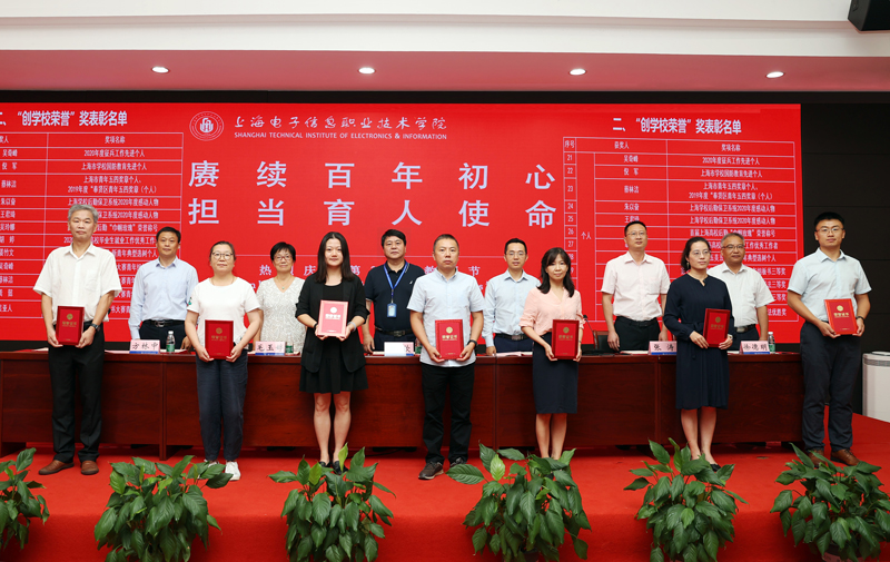 表彰大会特别设立“三全育人”奖、“创学校荣誉”奖、“教学质量工程”奖、“技能大赛”奖、“教学科研”奖五大奖项。在激动人心的颁奖领奖环节,学校领导毛玉婷、张涛、徐德明、方林中纷纷声情并茂地宣读了各个奖项的颁奖词,用热情洋溢的语言对获奖教师表达了深情赞许和祝福。总计41名教师代表现场接受了表彰,并与校领导集体合影留念。