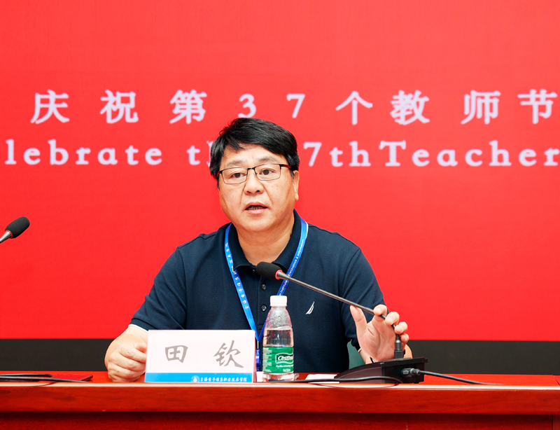 三寸粉笔,三尺讲台系国运;一颗丹心,一生秉烛铸民魂。田钦书记代表学校党政对全校教师员工提出希望和要求。一是涵养师德,以德立身以德施教。要常怀“四有好老师”标准,积极参与学校事业改革和发展,以崇高的理想信念点燃学生爱国报国志向,以扎实深厚的学识为学生插上梦想的翅膀。二是爱生乐业,忠于职教建功岗位。职业教育前途广阔、大有可为。要牢记总书记的讲话,把学生培养好,人尽其才,人尽其用。要尊重、珍惜、敬畏教师职业,争做习近平总书记提出的“有理想信念、有道德情操、有扎实知识、有仁爱之心”的好老师。三是精钻业务,守正出新精业笃行。教师的品行、学识和为人直接影响学生成长成才,而教师队伍建设则直接决定学校办学水平。要正确处理好教学与科研关系,提升自身科研能力和水平,用科研成果反哺教学,以高水平科研促进高水平教学,科教协同培养一流人才。四是教书育人,学高为师身正为范。亲其师才能信其道,亲其生才好因材施教。要争做践行社会主义核心价值观的楷模和榜样,自觉将社会主义核心价值观融入日常,以实际行动做模范示范,自觉亲近学生,主动关心和发现“00后”,做深受学生敬仰爱戴的学问之师、品行之师。五是寄望未来,干事创业担当作为。未来以来,行则将至。要最大力度、最大强度为教师职业生涯发展和生活水平提高搭建平台,创造条件,进一步建立良好的导向激励机制,进一步营造风清气正、干事创业的氛围,让担当教师无惧,让有为教师有位,让教师安心从教、热心从教、幸福从教。