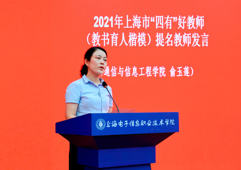 俞玉莲 2021年上海市“四有”好教师(教书育人楷模)提名:以立德树人、传道授业为初心,辛勤耕耘、潜心教书育人;以培育具有爱国情怀、工匠精神的高素质技术技能人才为己任,爱岗敬业、探索及践行专业建设。