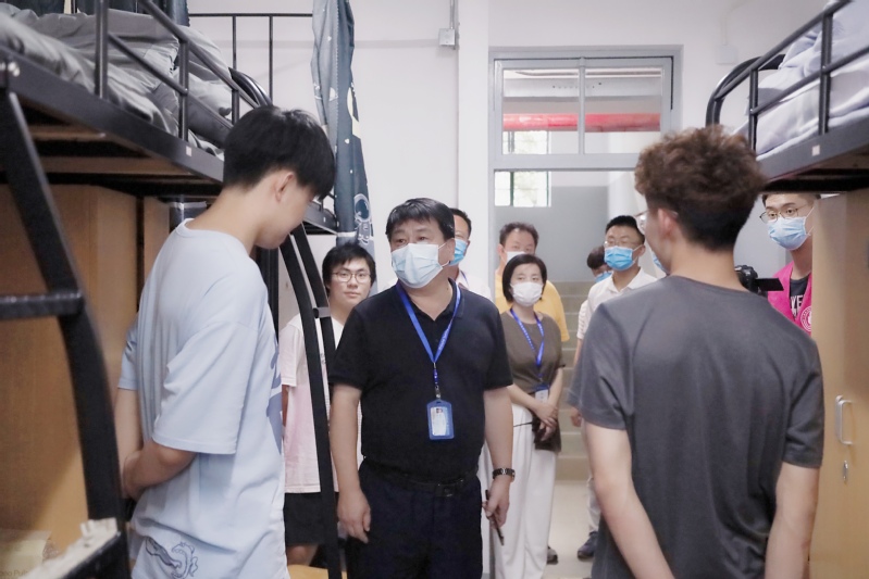 学校领导先后来到普陀校区迎新现场,指导迎新及疫情防控工作,暖心慰问现场的师生,并对实训室的建设工作以及开学后的教学准备工作给予指导意见。领导们热烈欢迎2021级新生的到来,并来到寝室与新生亲切交流,督促他们在普陀校区好好学习生活,充分利用市区资源,开阔专业眼界。