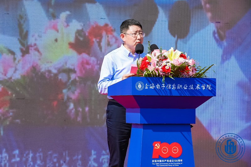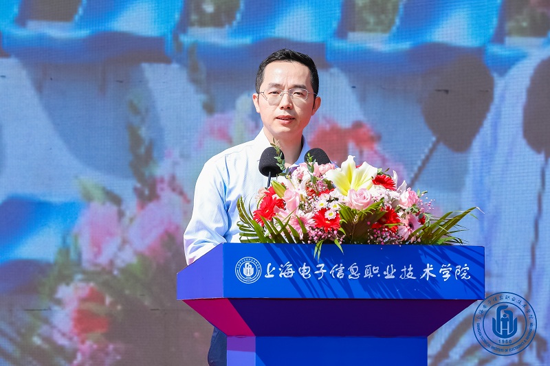 赵坚还介绍了学校60余年的发展历程,虽几度更名,但“为党育人,为国育才”的初心从未改变。他指出,在职业教育发展前所未有的大好形势下,学校正聚精会神,落实学校“十四五”发展规划,为实现职业本科大学创建这一战略发展目标不断努力。在祖国发展的黄金期、职业教育发展的加速期和学校发展的关键期,他对新生们提出三点希望:第一,希望同学们赓续红色血脉,担负起“强国有我”的历史使命。在实现第二个百年奋斗目标新的赶考路上,不负时代,不负韶华,不负党和人民的殷切期望;第二,希望同学们珍惜青春年华,在勤学善思中追求卓越。做时间的主人,不负青春时光,既要有良好的起步,也要保持奔跑的耐力,还要把握好加速的时机;第三,希望同学们主动担当创新使命,做守正创新的电子信息人。和学校一同奋进,以更大信心,以更强勇气,在科技和产业大变局中主动应变乘势而为,在学习中创新,在创新中学习,不断研究真问题、钻研真学问、练就真本领、积蓄真实力,成为具有国际竞争力的知识型、发展型、创新型、复合型高端技术技能人才,助力学校早日升本成功,奋力开启学校发展新征程。