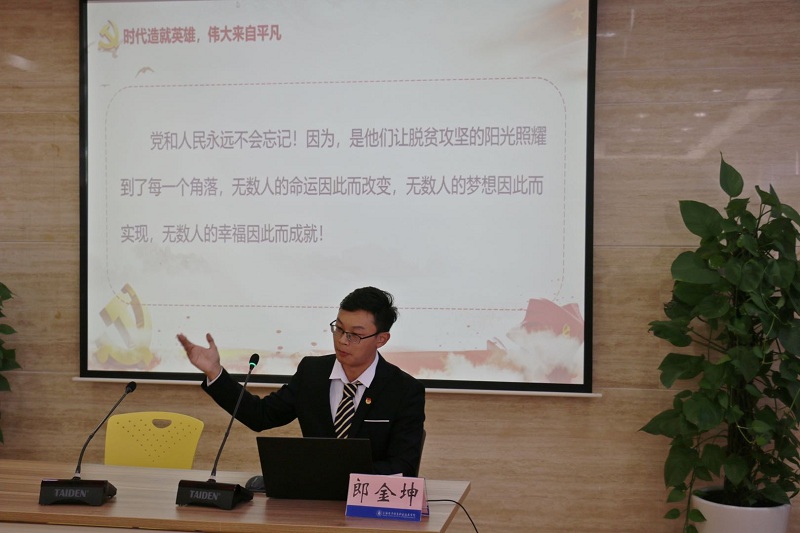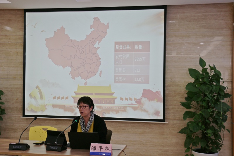 第二组宣讲团由学校关工委副主任潘丰枫、辅导员张秀丽、学生郎金坤等三人组成。他们以“脱贫攻坚”为切入点,从脱贫攻坚的意义与成效、优秀的扶贫干部、不同年代“脱贫攻坚”的困难与考验等三个方面,用一个个鲜活的事例和一组组详实的数据,介绍了我国在“脱贫攻坚”中所做的工作和取得的丰硕成果,让在场的师生真切地感受到脱贫攻坚为人民和乡村带来的巨大变化。