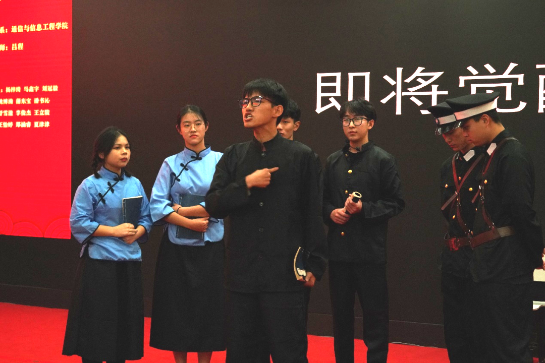 本次大赛凭借演员出色的表演、精彩的剧情以及积极健康向上的主题,给观众和评委们留下深刻的印象。经过激烈的角逐和公正的评判,最终通信与信息工程学院参赛作品《我们的1919》获得了第一名。知其史方能激其志,激其志方能尽其责。本次情景剧大赛将党史故事和红色精神提炼升华后搬上舞台,以独特的艺术视角把握时代脉搏,以强烈情感冲击力和舞台张力震撼着观众,以党史学习教育贯穿全场。我们聆听百年党史的回声,铭记万千党员的英雄事迹,铭记党的历史经验,从百年党史中汲取智慧和力量,以青春之我,筑青春之国家,青春之民族,用忠诚和实干庆祝党的百年华诞,创造更美好的未来。(供稿:通信与信息工程学院团总支)