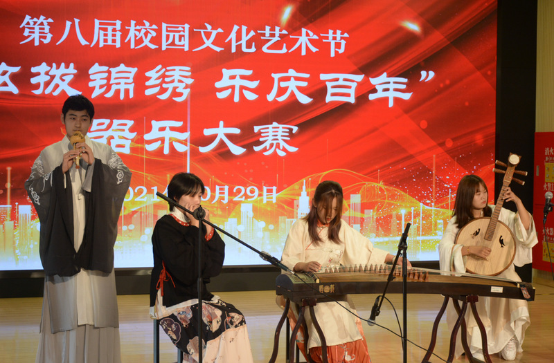 此次器乐大赛主题鲜明,内容丰富,共有竹笛、葫芦丝、二胡、钢琴、吉他演奏等15个节目进入决赛。选手们身着盛装,演奏了《井冈山上太阳红》《我爱你中国》《我和我的祖国》等红色经典曲目,美妙悠扬的音符不但传递出了同学们对艺术的热爱和享受,更充分展示了365官网学生深厚的爱国情怀和全面的人文素养。同学们的精彩表演和演奏技术赢得了在场观众的阵阵热烈掌声,也获得了专家评委的一致好评。