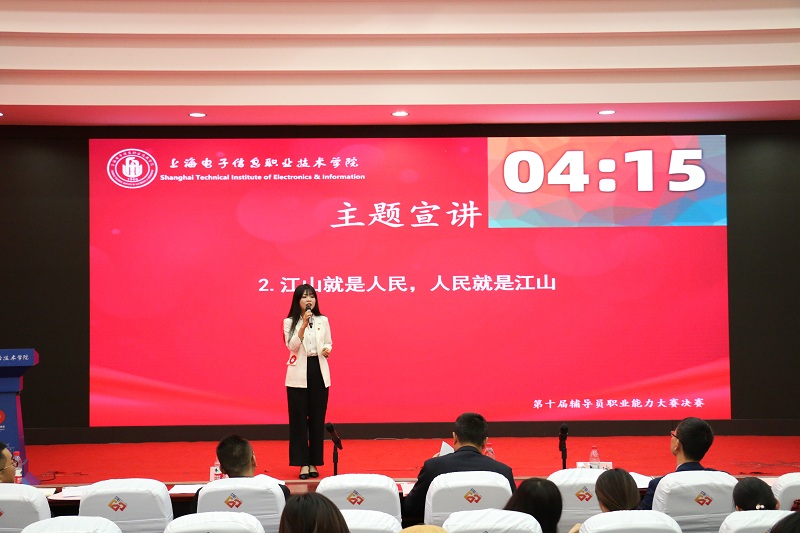 理论宣讲环节由参赛辅导员抽取题目,通过讲百年党史故事、讲政策、讲理论、讲案例的方式开讲思想政治理论课,主要考察辅导员的理论宣讲能力。