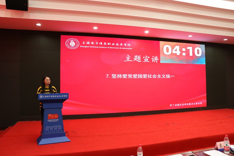 学校党委副书记、副校长张涛出席大赛并讲话。上海应用技术大学学工部长袁翔、上海旅游高等专科学校学工部长房定斌、上海建桥学院学工部长张巍及第九届上海高校辅导员素质能力大赛一等奖获奖选手、东华大学辅导员杨柳出席并担任评委,各二级学院学生工作负责领导、全体辅导员、学工部相关人员到场观摩。