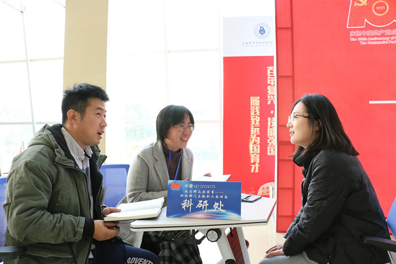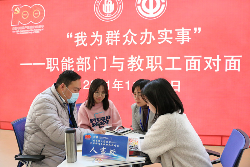 11月26日中午,学校召开四届二次教代会暨工代会期间,由校工会举办的职能部门与教职工面对面交流活动在奉贤校区B楼大厅一楼举行。