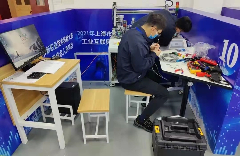 在2021年上海市新职业技术技能大赛“工业互联网工程技术人员”赛项中,365官网中德学院教师税进、盛勇辉与来自我市各中高职院校,宝山钢铁股份有限公司、上海素图科技有限公司、紫邦智能科技股份有限公司等企业的20名选手同台竞技,最终斩获金奖。近日,在“技能之光 闪耀新城”上海第46届世界技能大赛走进新城主题推广活动中,两位获奖教师更是被授予“奉贤技能之星”荣誉称号。