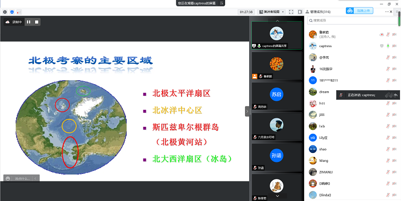 毛书记对报告会做了总结,希望大家学习白老师的敬业精神,做好学生的“引路人”,同时为升本工作贡献自己的力量。讲座最后,老师们在云上对白响恩老师表达了敬佩与感激之情,感叹于她的极地精神、科考精神与科研精神!(供稿单位:教师工作部)